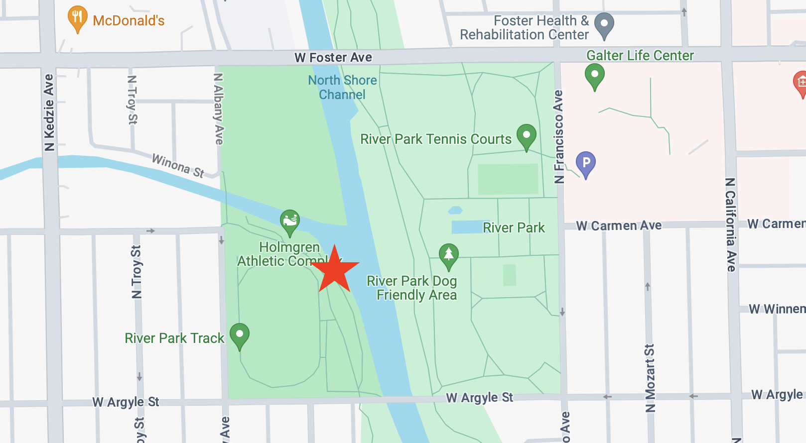 NOTE: The new gardens will be going in at River Park, which is a Chicago Park District park in the Albany Park neighborhood. River Park is not a nickname for the Wild Mile! The closest address to our install location is 3000 W Argyle St., and below is a map showing our exact location within the park.